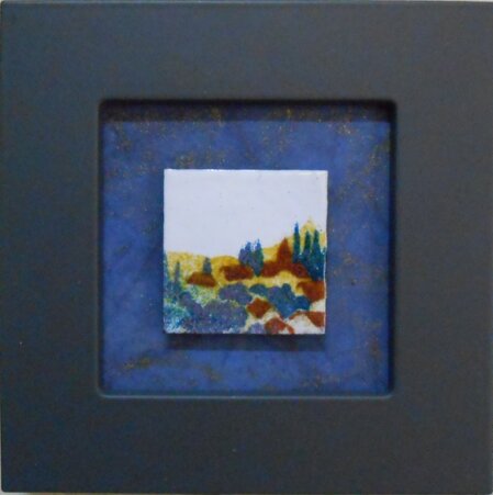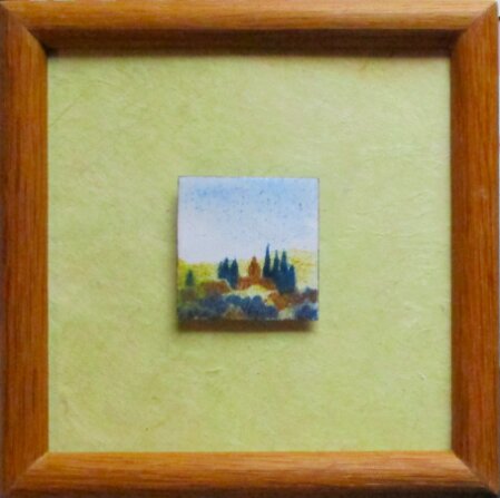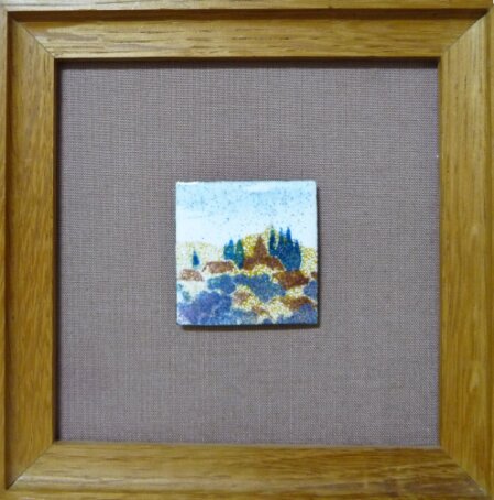 Colline du soleil, émail 4 x 4 cm, cadre chène 13 x 13 cm, réf.pays12 : 45 €
