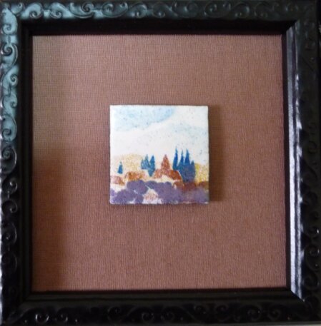 Colline du soleil, émail 4 x 4 cm, cadre chène 13 x 13 cm, réf.pays12 : 45 €