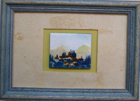 Provence dorée, émail 4 x 6 cm, cadre 16,5 x 20 cm, réf.pays31 : 65€.